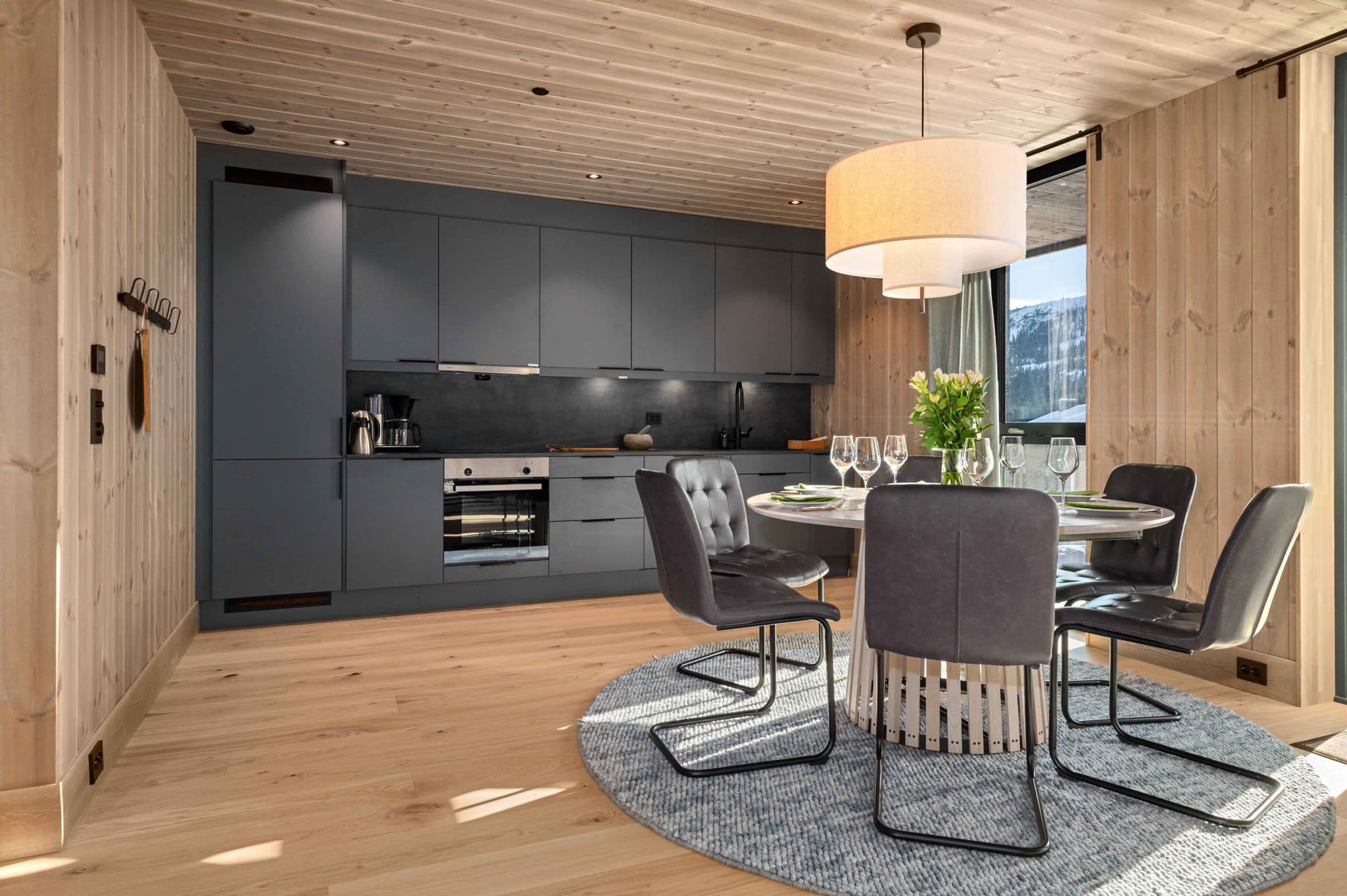 • Kjøkken-/stueløsning med store vindusflater